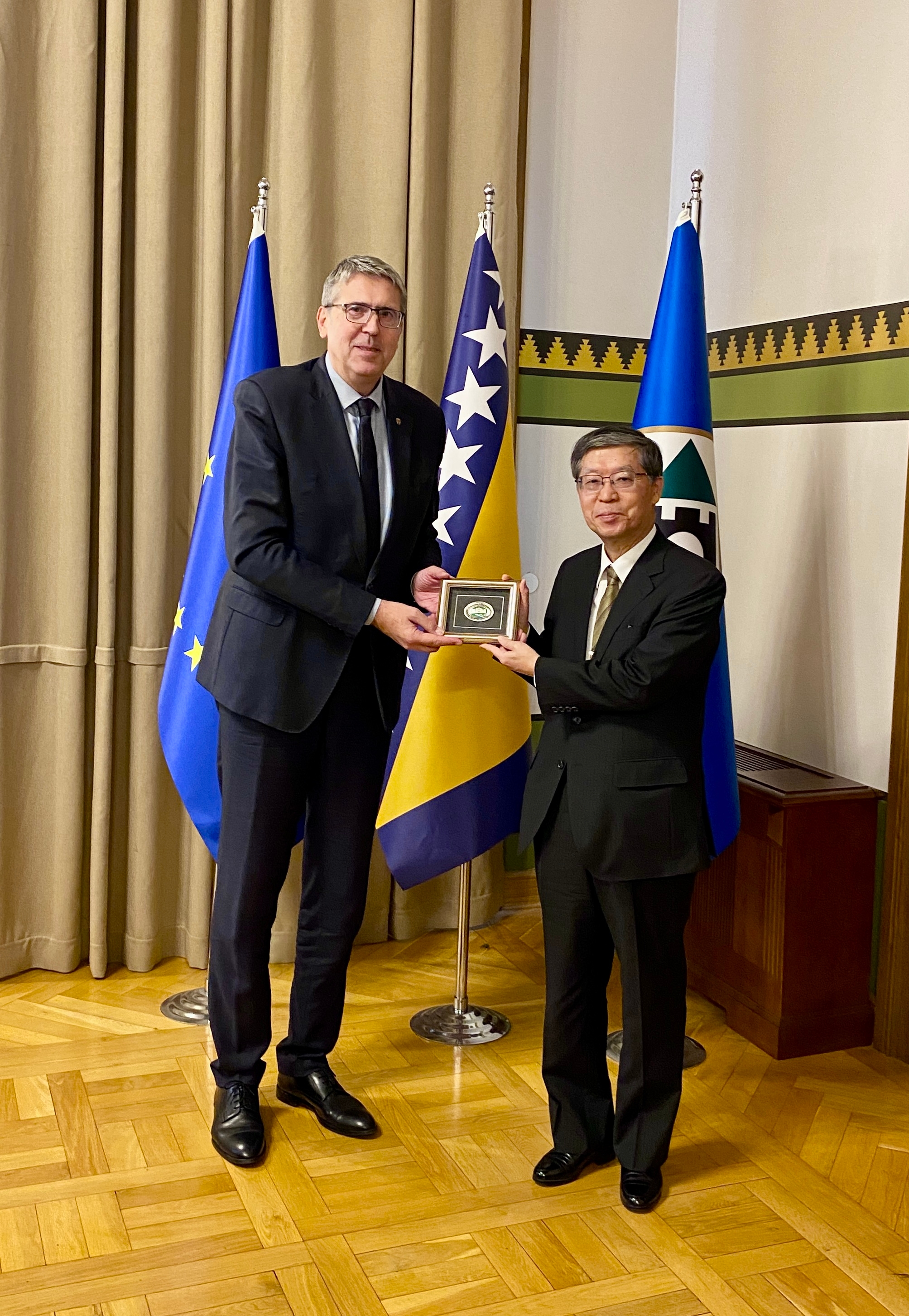 Dana 30. septembra, ambasador Aiki je obavio nastupnu posjetu gospodinu Samiru Avdiću, gradonačelniku Sarajeva. Sagovornici su istakli da su Japan i Grad Sarajevo izgradili dobre odnose kroz različite projekte, te su prepoznali potencijal za dalju saradnju i razvoj u oblastima ekonomije, kulture, okoliša i turizma. Također su se osvrnuli na razmjene između grada Hirošime i Sarajeva, kao i između Treće gimnazije u Sarajevu i Kaichi Nihonbashi Gakuen u Japanu. Naglašavajući važnost međusobnog učenja među građanima, uključujući i područje mirovnog obrazovanja, složili su se da će nastaviti raditi na daljem razvoju takvih razmjena.