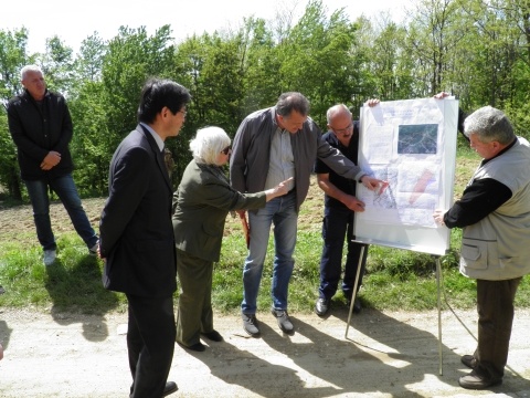 4月26日,小川和也駐ボスニア・ヘルツェゴビナ日本国大使は,ボスニア・ヘルツェゴビナ北部に位置するテシャニ市において,平成25年度草の根・人間の安全保障無償資金協力「テシャニ市における地雷除去支援計画」及び「ドボイ市における地雷除去支援計画」の引渡式に出席しました。引渡式には,小川大使のほか,スアド・フスキッチ・テシャニ市長,オブレン・ペトロビッチ・ドボイ市長及びサシャ・オブラドビッチ・BHMAC所長代行などが出席しました。日本政府はテシャニ市及びドボイ市において地雷除去を行う本2計画のためにそれぞれ378,946ユーロ(40,547,222円)及び378,301ユーロ(40,478,207円)を供与しました。本2計画によって約800,000平方メートルの地雷除去が行われました。