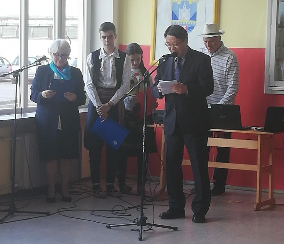 6月10日,ボスニア・ヘルツェゴビナの首都サラエボから東へ約70キロに位置するビシェグラード市において,平成29年度草の根・人間の安全保障無償資金協力「ビシェグラード市ブーク・カラジッチ小学校修復計画」の引渡式が行われ,坂本秀之大使,ジュレビッチ・ビシェグラード市長及びラドイチッチ・ブーク・カラジッチ小学校校長等が式典に出席しました。