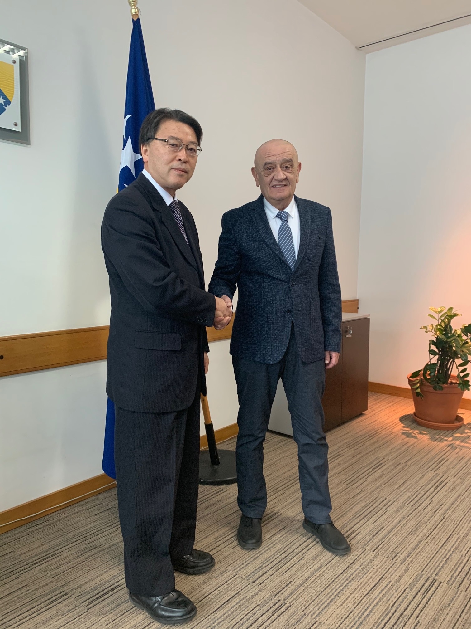 3月4日,坂本大使は,ベバンダ財務大臣を訪問し,様々な分野における二国間協力の促進について話し合いました。坂本大使からは,日本政府の円借款によるウグリェビック火力発電所排煙脱硫装置建設計画が間もなく完工すること,また,日本政府がその策定に30万ユーロを拠出した「グリーン・カントン・アクション・プラン」の成果としてサラエボの環境案件に対し欧州復興開発銀行(EBRD)が長期融資を決定したことに祝意を伝えました。ベバンダ大臣からは,ボスニア・ヘルツェゴビナに対する日本の各種支援に謝意が表され,特に環境保護に関する協力が拡大することへの期待が述べられました。