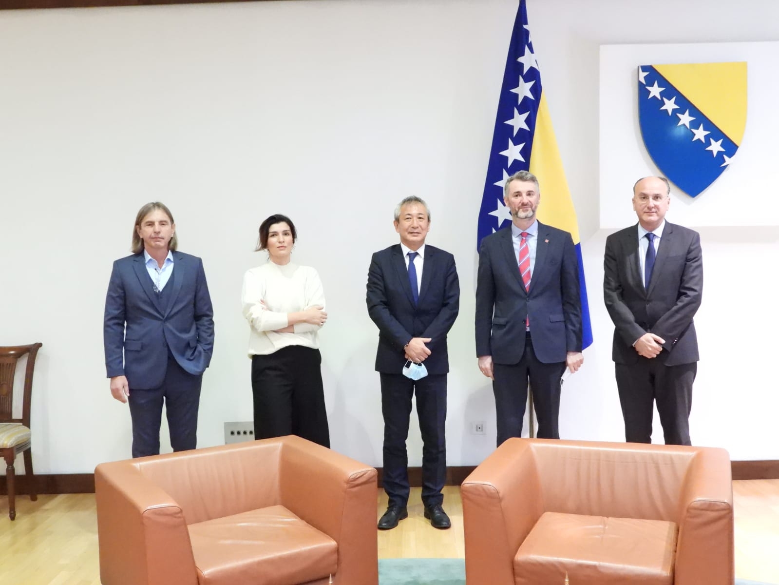 伊藤大使と「我々の党」代表者との意見交換 令和3年10月20日 11日、伊藤大使は「我々の党」のフォルト党首、チュディッチ党幹事長、コヨビッチ下院議員、アルナウト下院議員と意見交換を行いました。「我々の党」代表者からは、同党が提案する憲法改正案についての説明がありました。