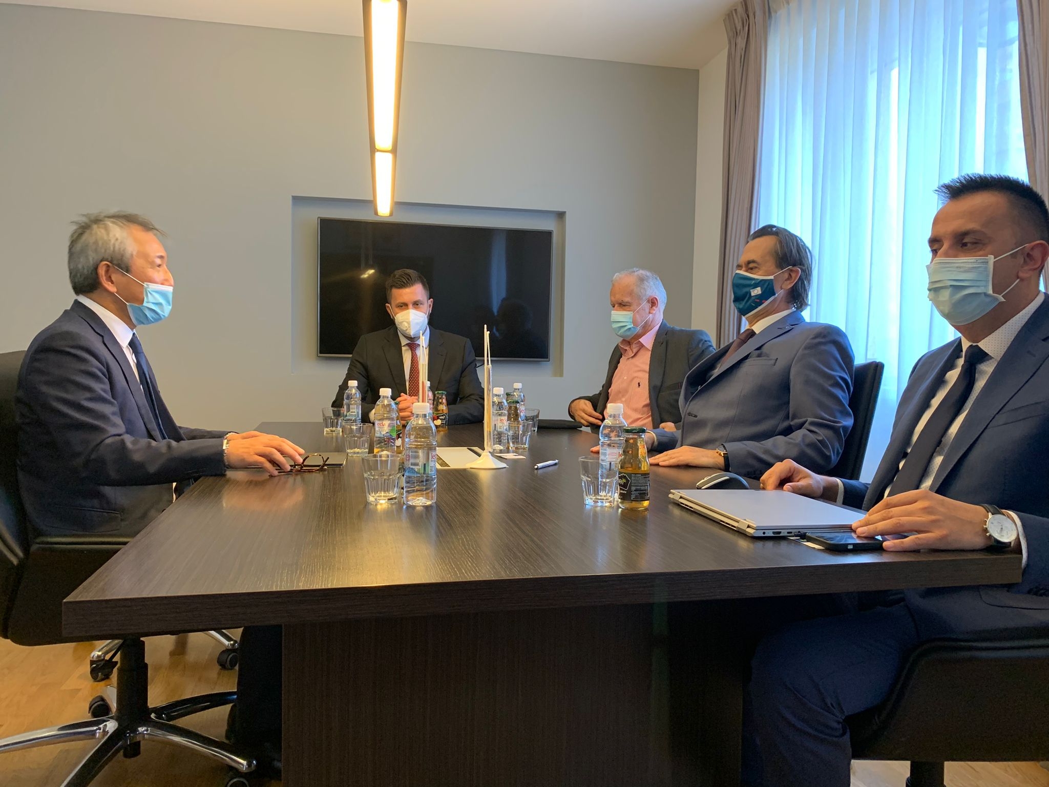 伊藤大使のトゥズラ県訪問 令和3年11月1日 10月25日、伊藤大使はトゥズラ県を訪問し、同県政府エルビス・ホジッチ首相、バラコビッチ同教育・科学大臣、ホジッチ同経済大臣及びラキッチ同財務大臣と会談を行いました。ホジッチ首相は、小学校等への支援を含め我が国の長きにわたる同県への支援に対して感謝の意を述べました。また伊藤大使とホジッチ首相は、同席の大臣と更なる経済・社会及び文化分野における今後の協力につき意見を交わしました。