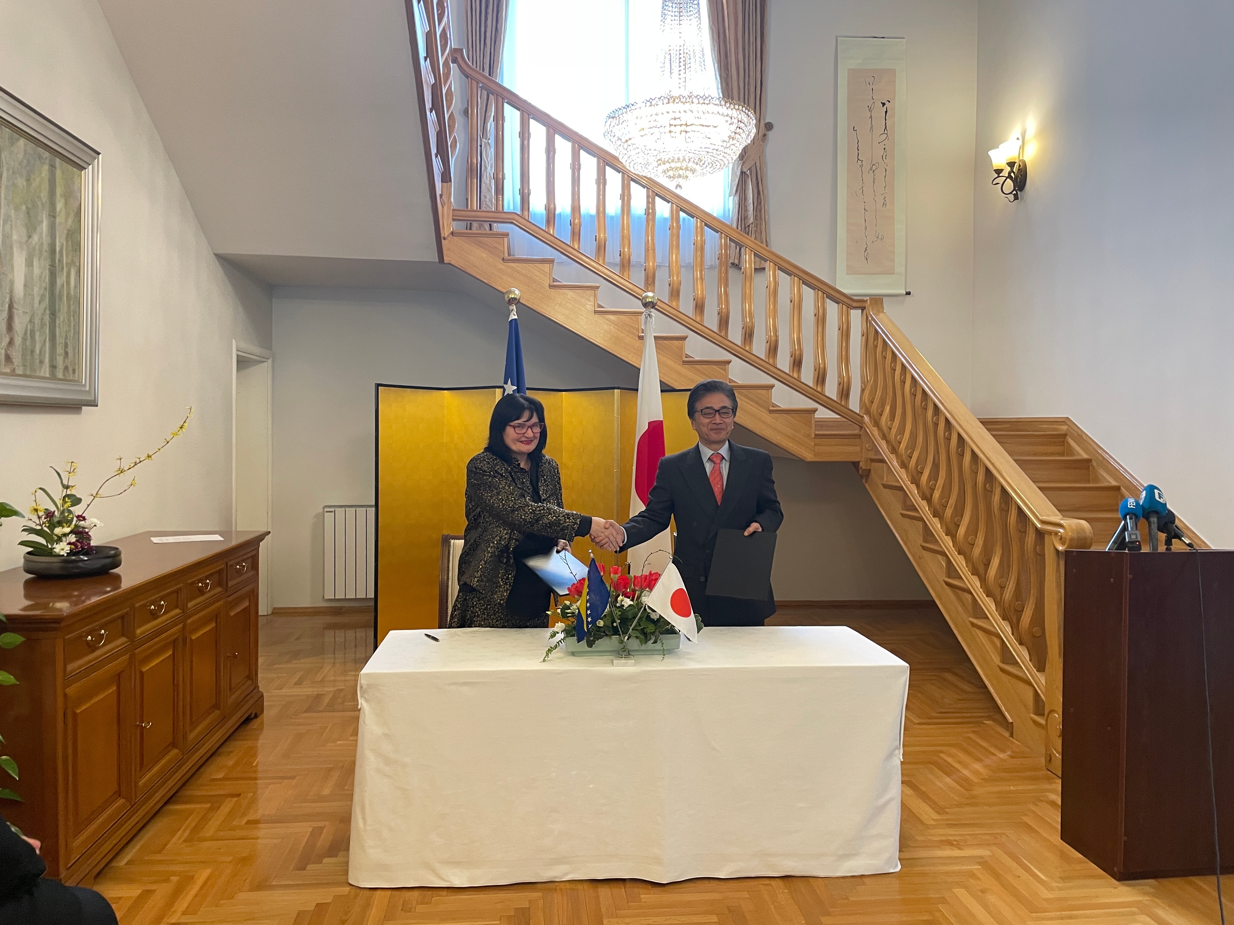 日本政府は、令和4年度草の根・人間の安全保障無償資金協力の一環として、「交通・郵便・通信事業従事者のためのサラエボ診療所X線撮影装置整備計画」に74,853ユーロ(約960万円)、「ブロード市ブロード診療所X線撮影装置整備計画」に72,347ユーロ(約930万円)を供与することを決定し、1月30日、日本大使公邸において杵渕大使と、ブロード診療所イェレミッチ所長及びサラエボ診療所のチュトゥク所長との間でそれぞれ、贈与契約に関する署名がおこなわれました。