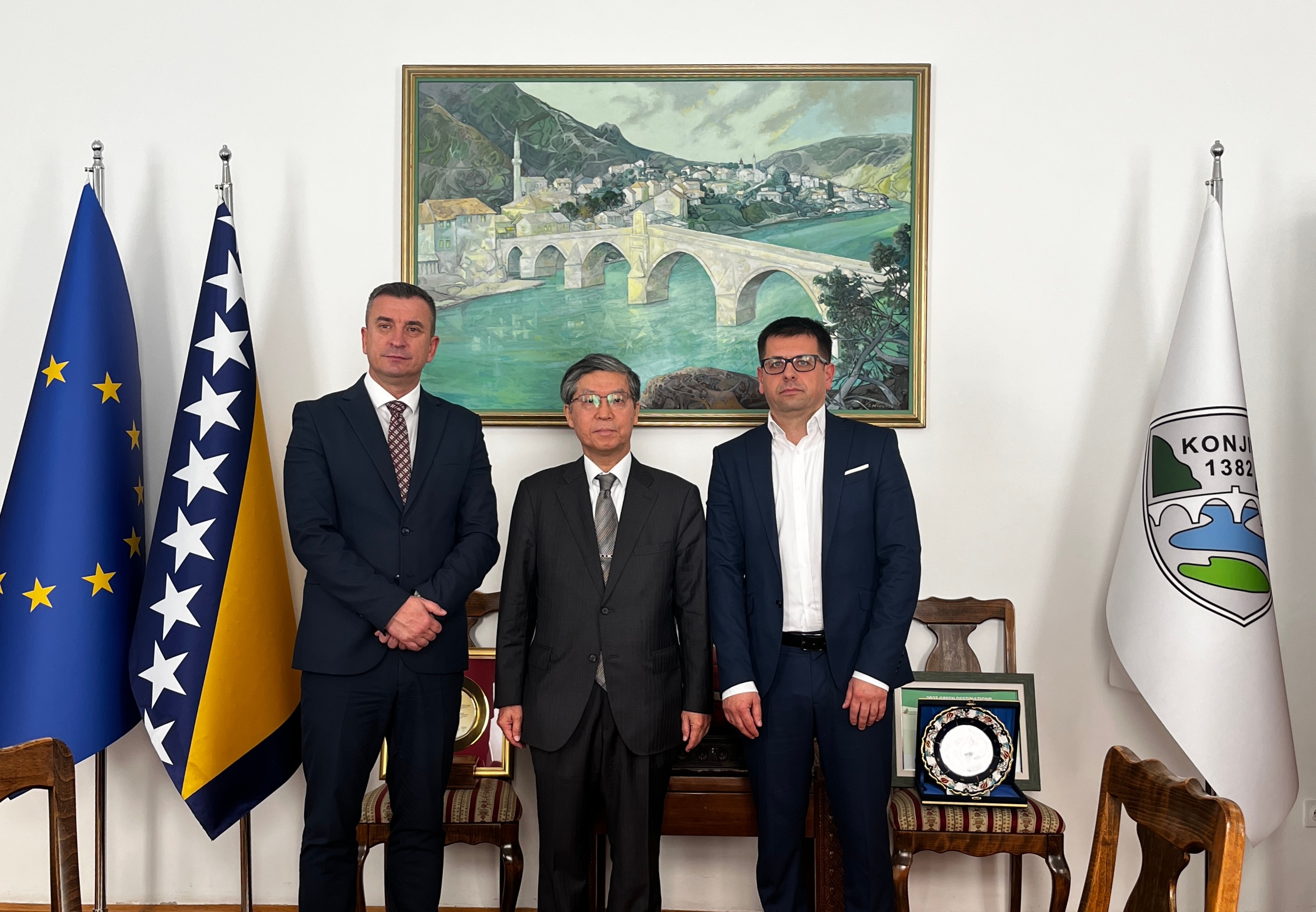 コニッツ市訪問 令和7年11月13日 11月11日、相木大使は、ヘルツェゴビナ・ネレトヴァ県コニッツ市を訪問し、チャティッチ同市市長と会談を行いました。会談では、同市に日本企業が進出していることも踏まえ、協力関係を更に強化していくことを確認しました。また、市長との会談後、同市に進出している日本企業「ツバキ・ナカシマ社」のコニッツ工場を視察訪問しました。同工場では、主に自動車産業に欠かせない精密ローラーが生産されています。